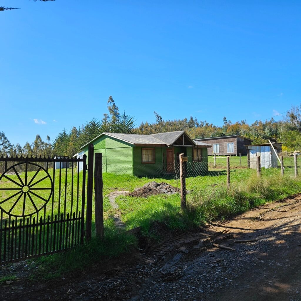 La superficie del terreno consta de 2 hectáreas, dentro de las cuales se incluye una casa construida, con 3 dormitorios, 1 baño, living, comedor y cocina
